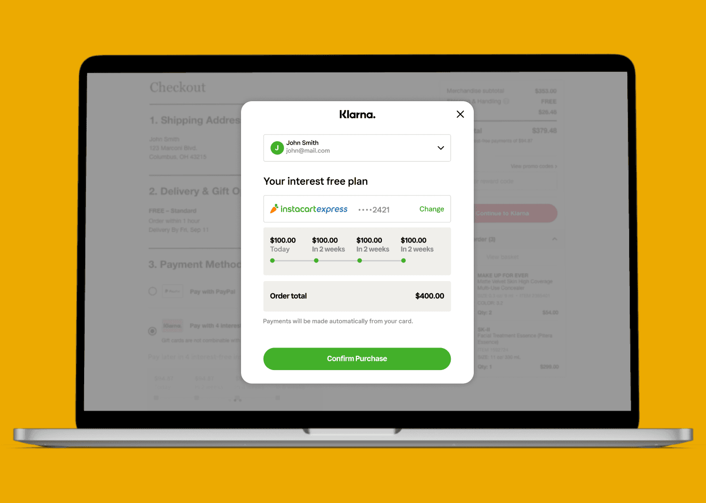 Instacart needed to increase Express adoption, reduce checkout friction, and drive repeat usage across both in-app and in-store purchases while preserving speed and trust in a high-frequency grocery experience. Klarna needed a native integration that showcased flexible payments, rewards, and social money movement without disrupting Instacart’s core flows.